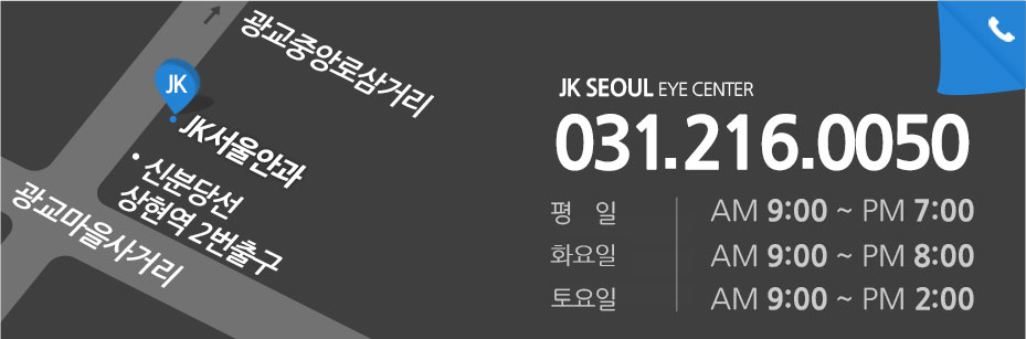 상호 JK서울안과의원 사업자등록번호 707.95.00183 대표 조형석 TEL 031.216.0050