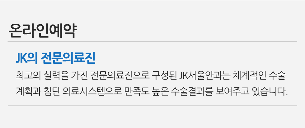상호 JK서울안과의원 사업자등록번호 707.95.00183 대표 조형석 TEL 031.216.0050